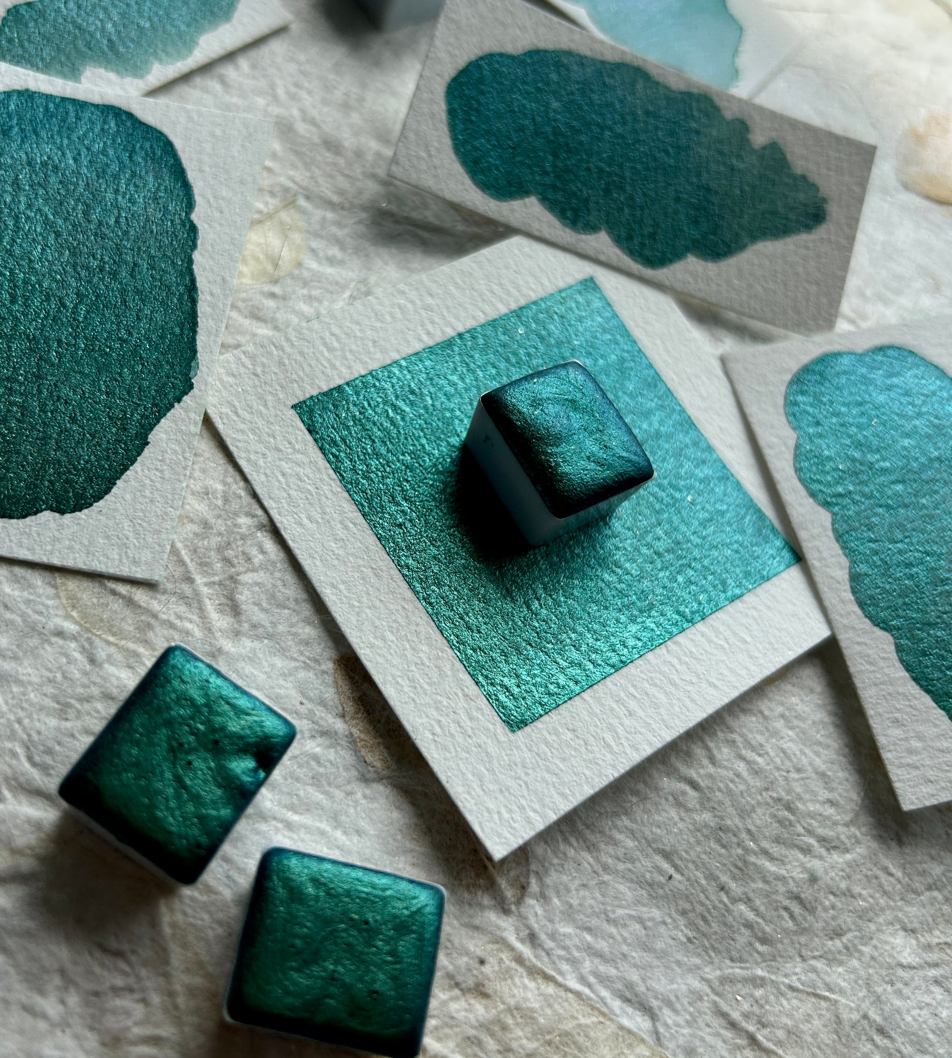 For my watercolour paints, I ensure that all my pigments are sourced ethically or are manufactured synthetically. Synthetic mica is mineral based, plastic-free and is completely safe to use. Large companies like Lush have already adopted synthetic mica as the only mica that they use for all their products.