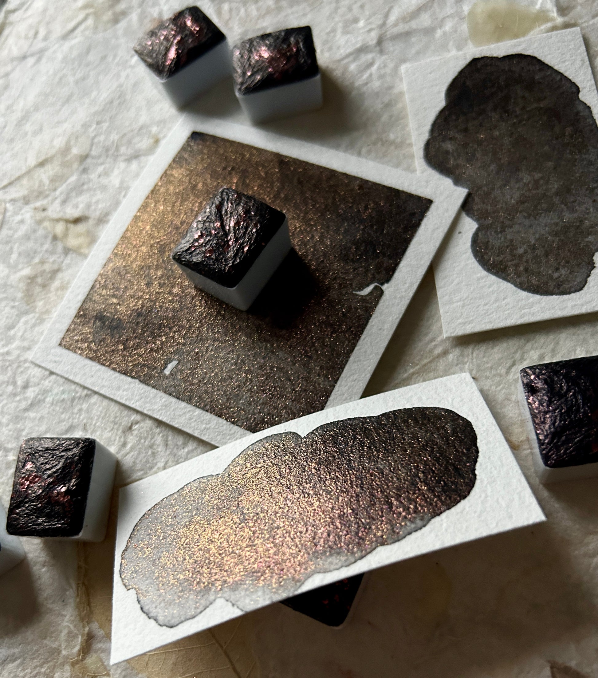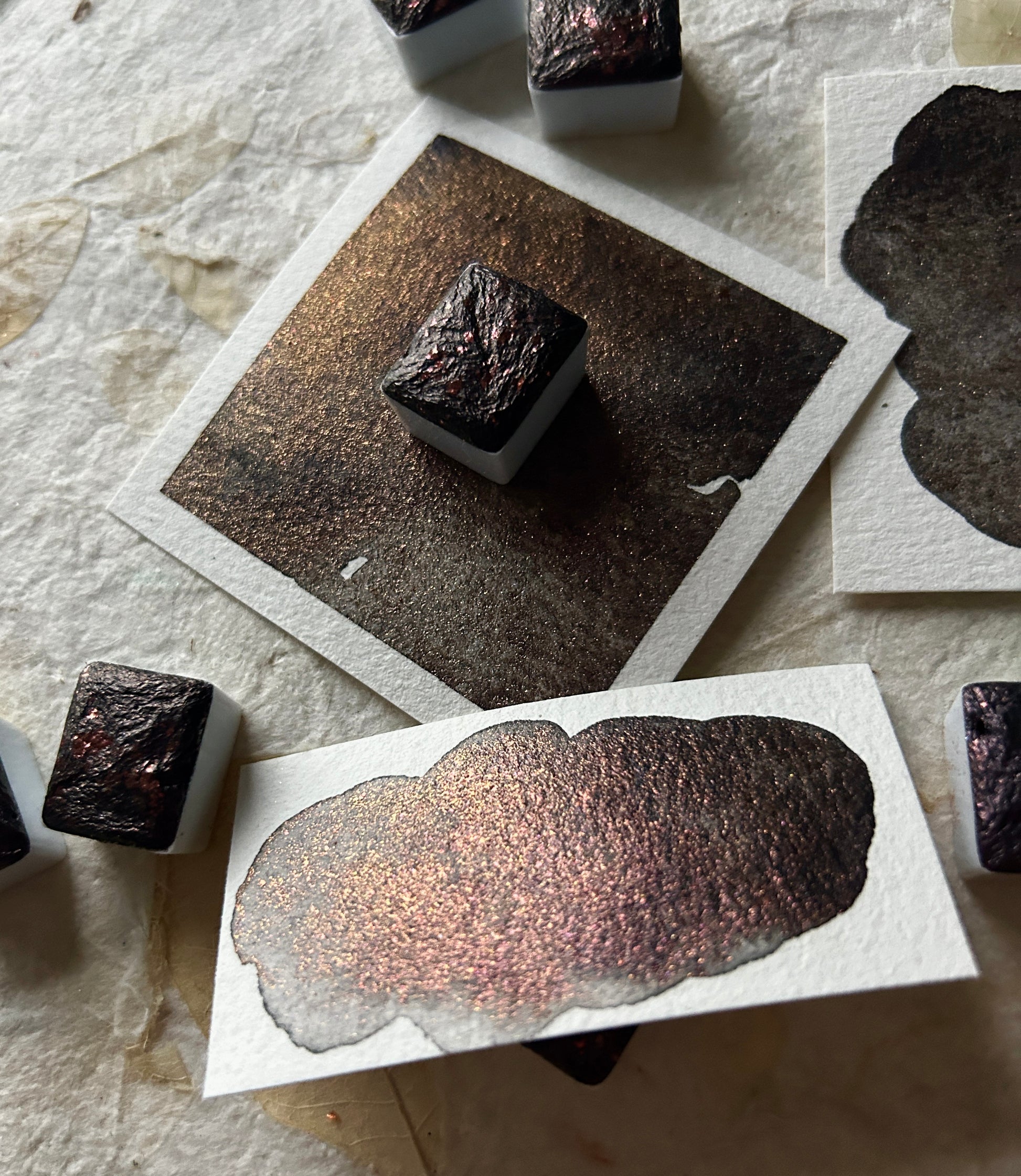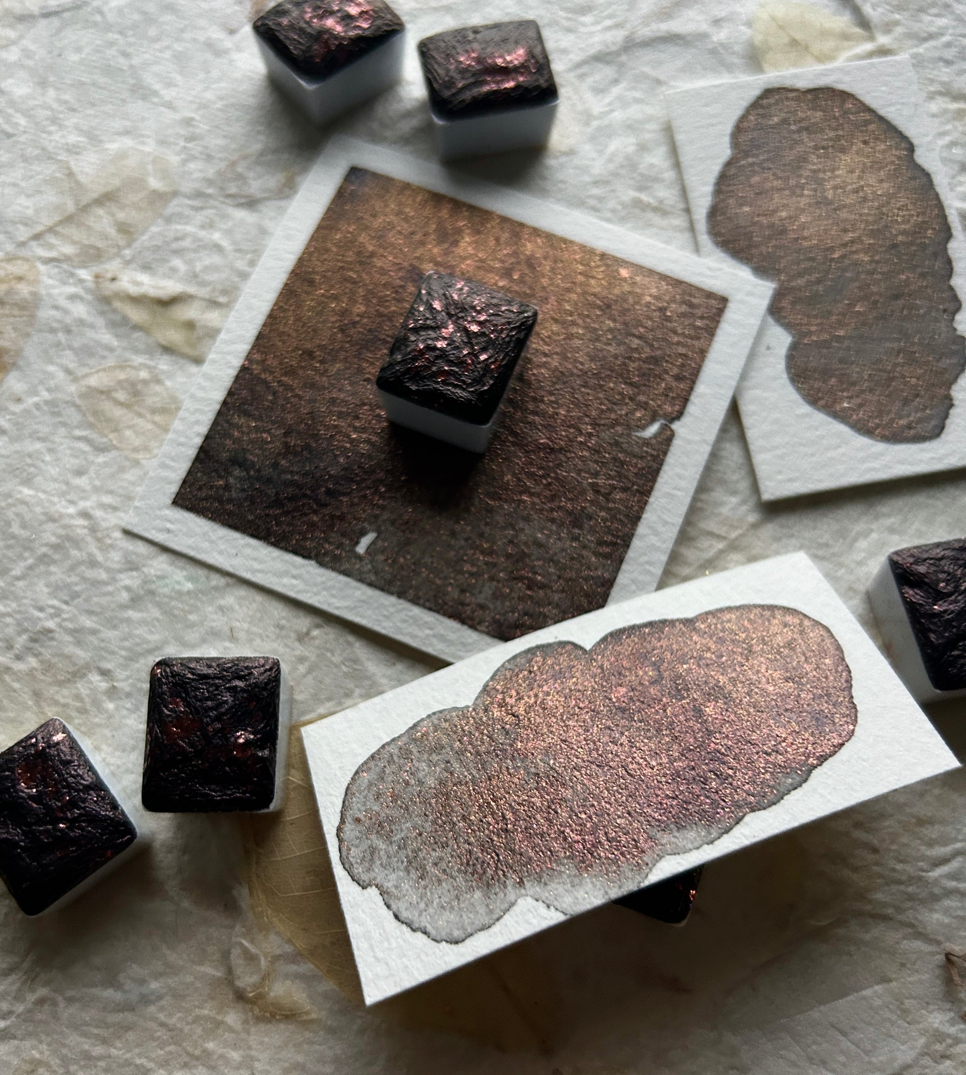 ✨The majority of swatches are made on 100% cotton paper and we do our best to represent the colour as closely as possible on the photos. It may appear different depending on your screen settings, the lighting/angle, the paper & brush that you use, the painting technique that you use.