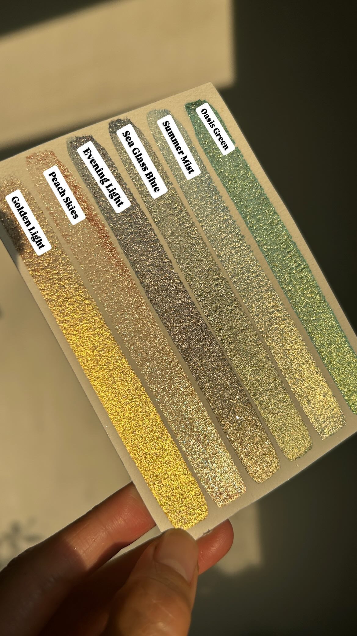 ✨The majority of swatches are made on 100% cotton paper and we do our best to represent the colour as closely as possible on the photos. It may appear different depending on your screen settings, the lighting/angle, the paper & brush that you use, the painting technique that you use.