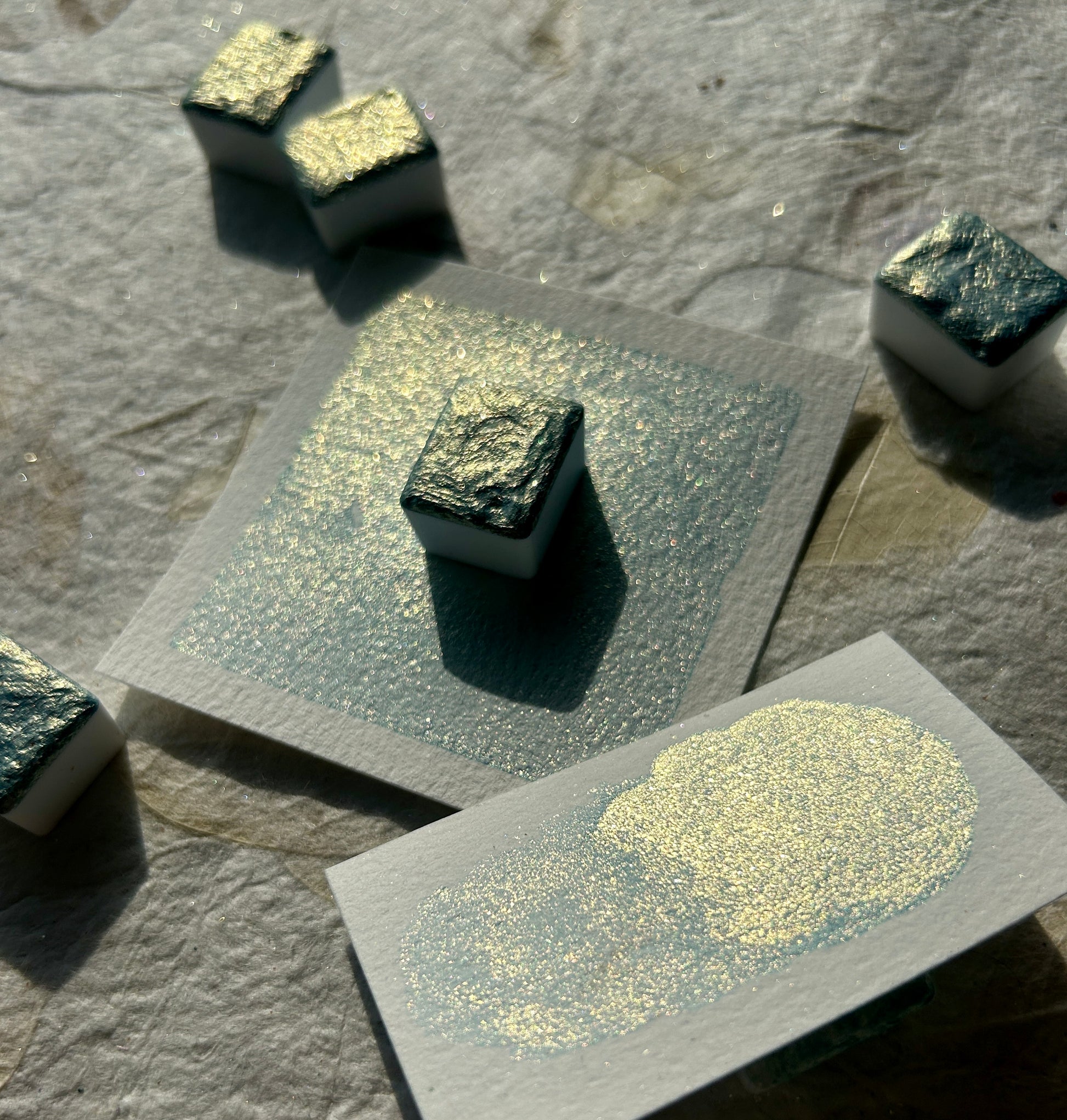 For my watercolour paints, I ensure that all my pigments are sourced ethically or are manufactured synthetically. Synthetic mica is mineral based, plastic-free and is completely safe to use. Large companies like Lush have already adopted synthetic mica as the only mica that they use for all their products.