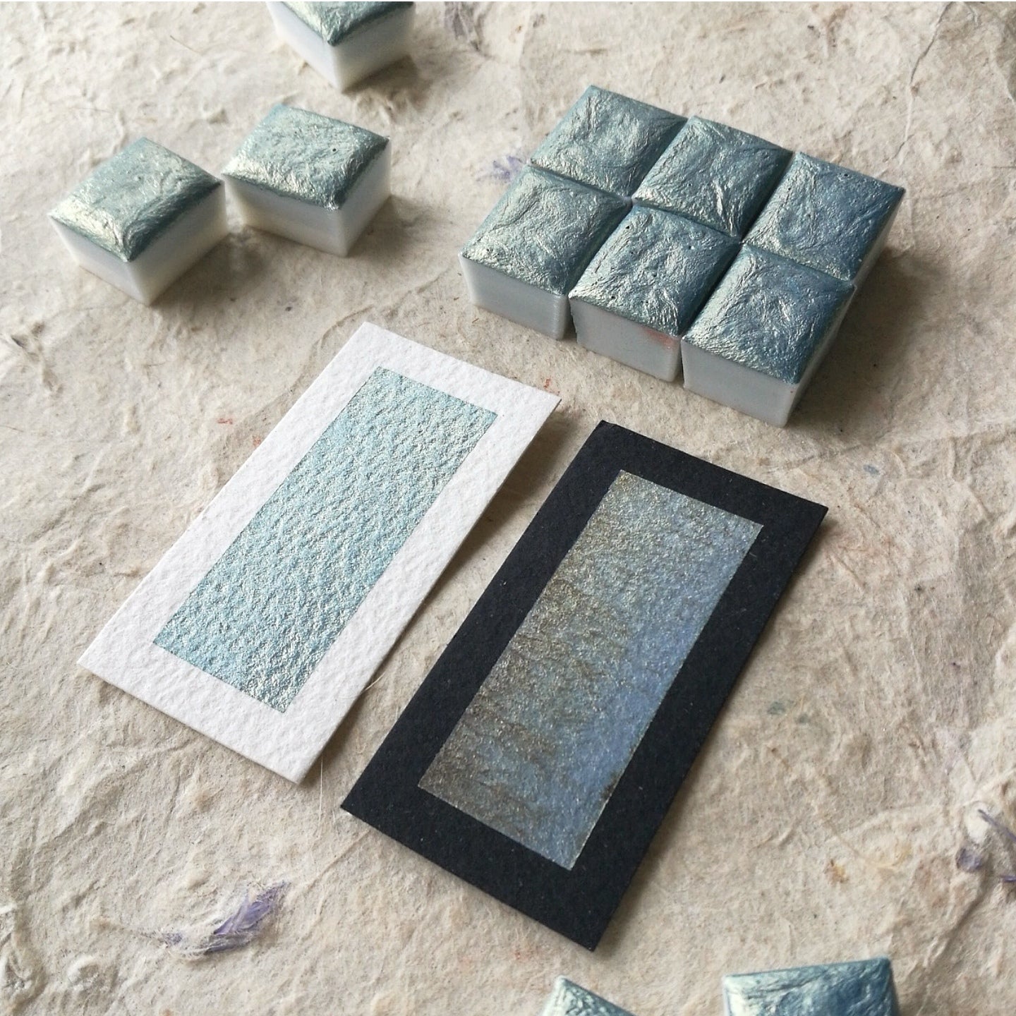 For my watercolour paints, I ensure that all my pigments are sourced ethically or are manufactured synthetically. Synthetic mica is mineral based, plastic-free and is completely safe to use. Large companies like Lush have already adopted synthetic mica as the only mica that they use for all their products.