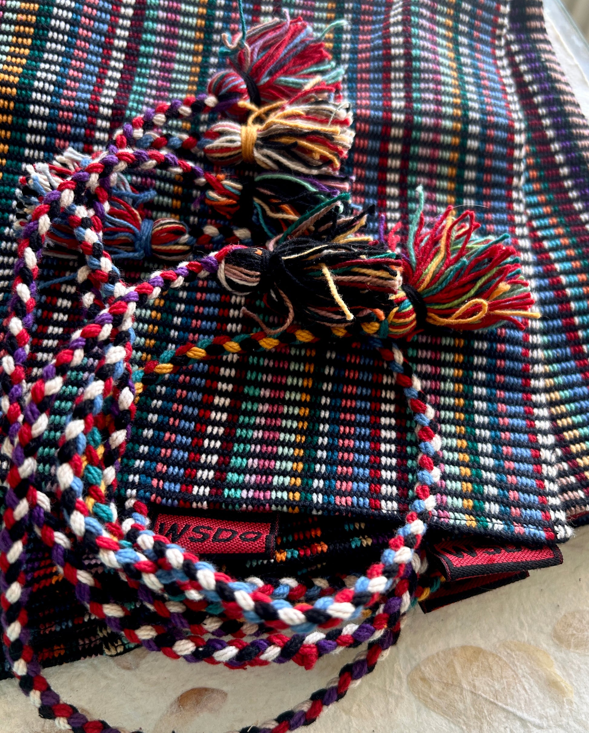 - The patterns are handwoven using ancient weaving techniques and using leftover materials.