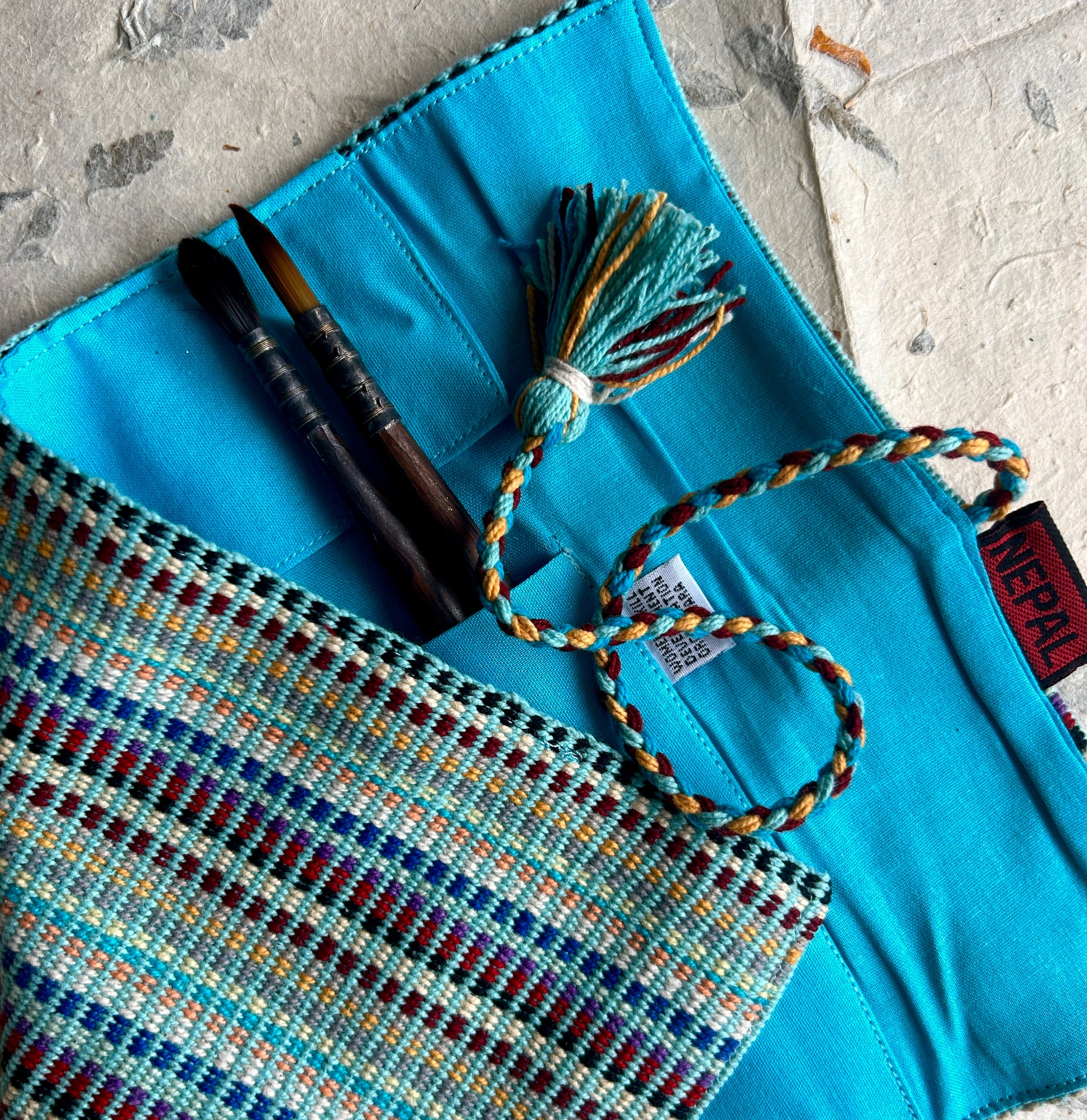 These beautiful handwoven brush/pencil rolls are the perfect addition to any artist travel kit. They were all handcrafted in Pokhara, Nepal.