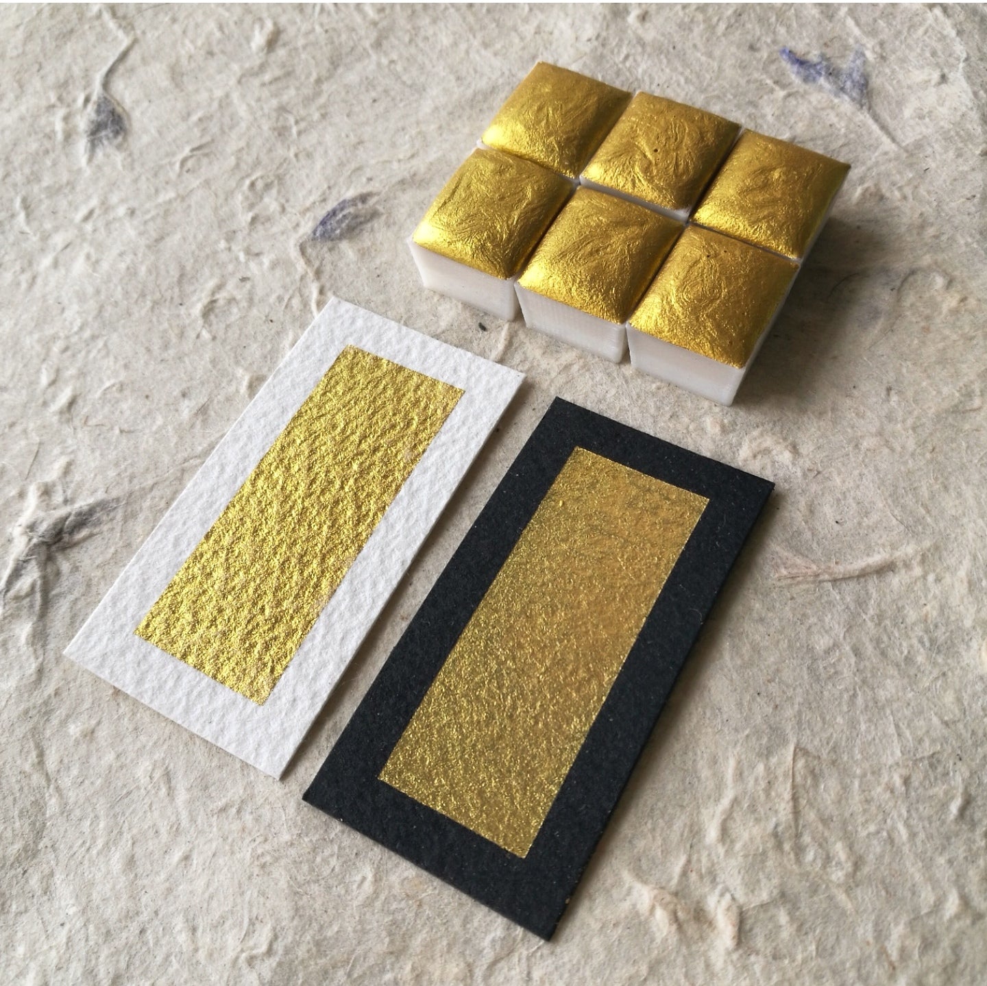 🌙New Moon (platinum gold) - This beautiful handmade gold watercolor is the perfect colour to bring some eyecatching shine to your work. Because of the synthetic mica in New Moon - the gold is extra extra extra shiny.
