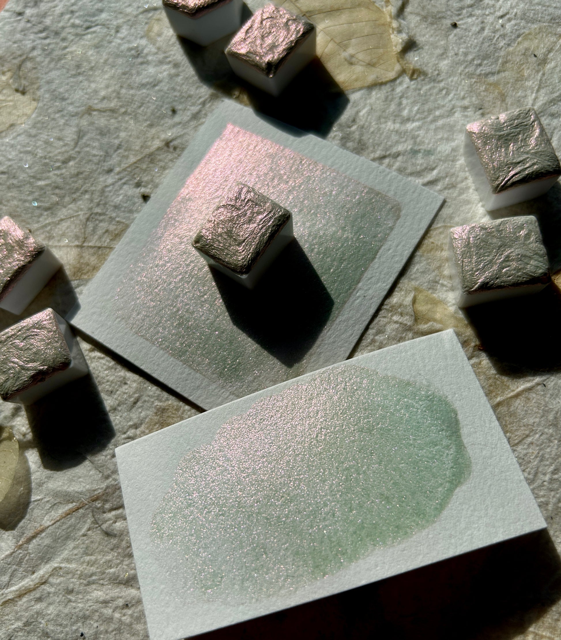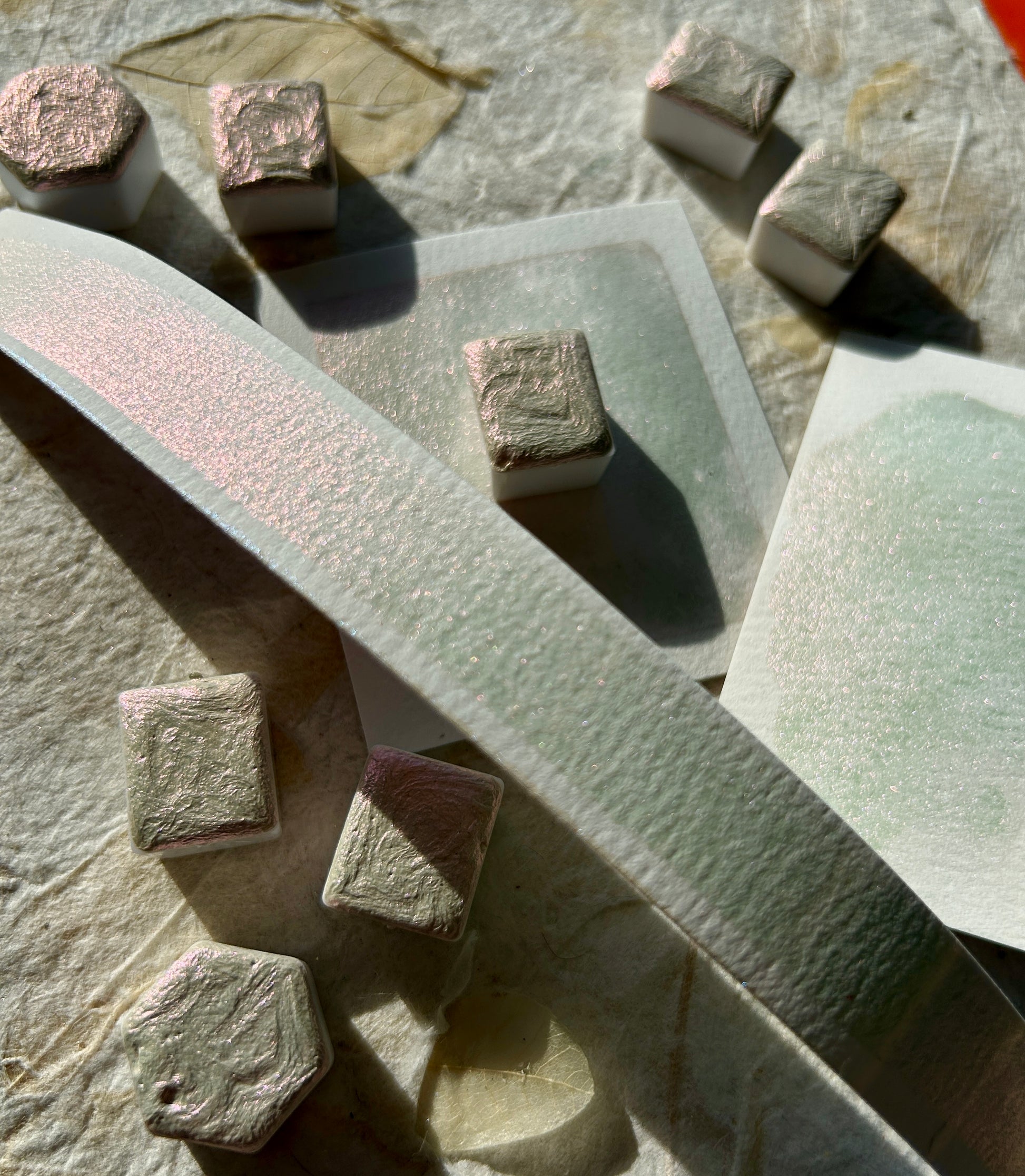 For my watercolour paints, I ensure that all my pigments are sourced ethically or are manufactured synthetically. Synthetic mica is mineral based, plastic-free and is completely safe to use. Large companies like Lush have already adopted synthetic mica as the only mica that they use for all their products.