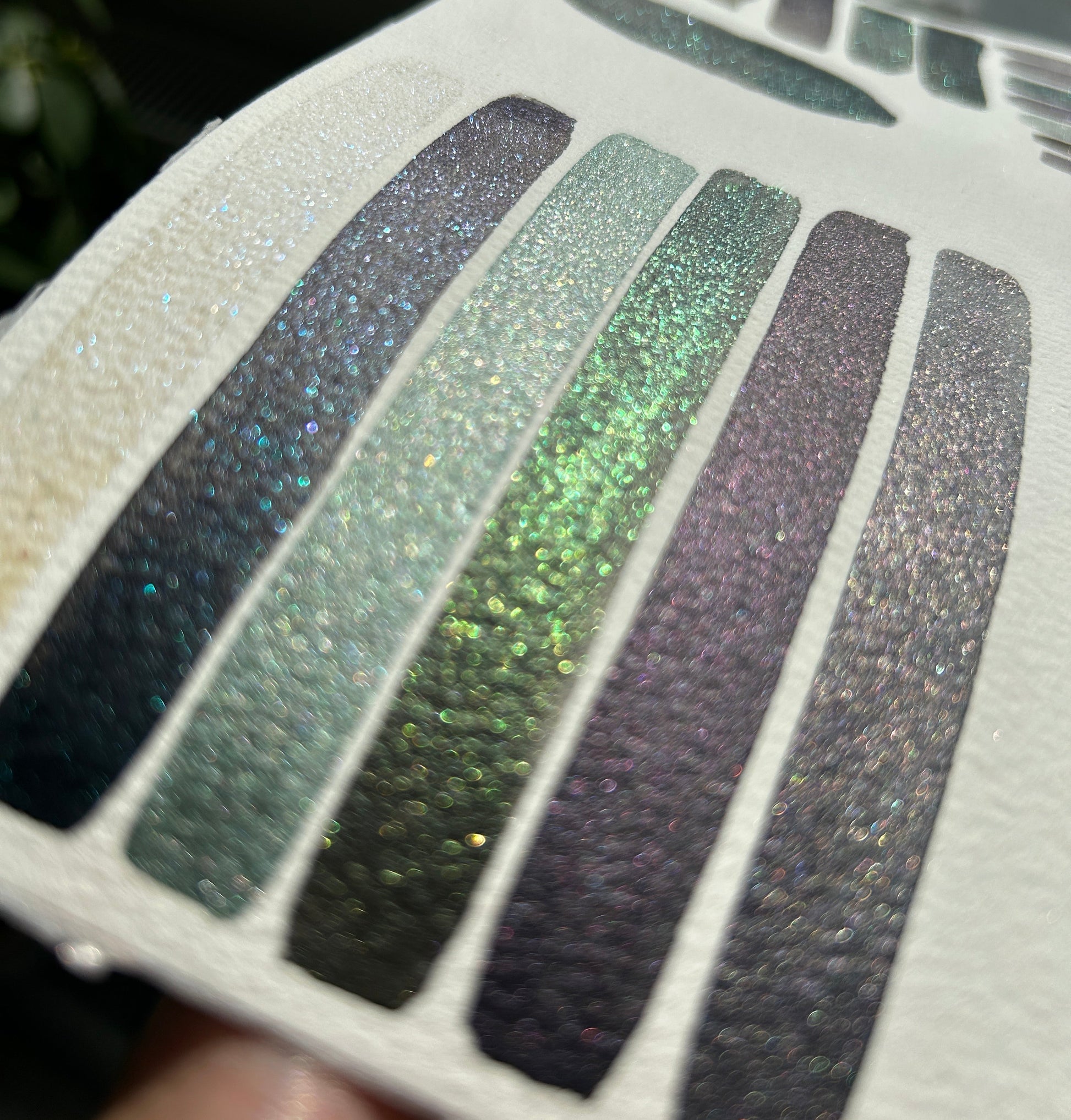 ✨The majority of swatches are made on 100% cotton paper and we do our best to represent the colour as closely as possible on the photos. It may appear different depending on your screen settings, the lighting/angle, the paper & brush that you use, the painting technique that you use.